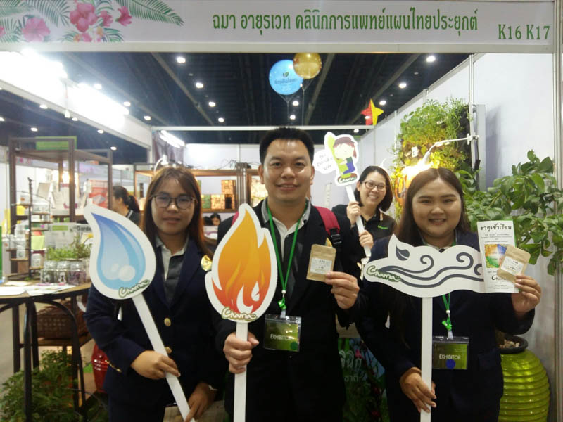 รวมพลคนรักสมุนไพรไทย ณ อิมแพ็ค เมืองทองธานี ทางฉมา อายุรเวท คลินิกการแพทย์แผนไทยประยุกต์ได้เชิญแพทย์แผนไทยที่คลินิกของเรามาให้คำปรึกษาฟรี เรื่องธาตุเจ้าเรือน ปัจจุบันธาตุ และการดูแลรักษาสุขภาพโดยการรับประทานพืชผักสมุนไพร พร้อมทั้งมีการจำหน่ายน้ำผักธาตุเจ้าเรือน Skincareสกัดจากมะรุม อาหารเสริม และผักชุดออร์แกนิค จากฟาร์มที่ได้รับรองมาตรฐานเกษตรอินทรีย์สากล IFOAM และ EU งานนี้ผู้เข้าชมบูธของฉมาได้ความรู้เรื่องสมุนไพรไทยและการดูแลสุขภาพจากแพทย์ของเราอย่างเต็มที่